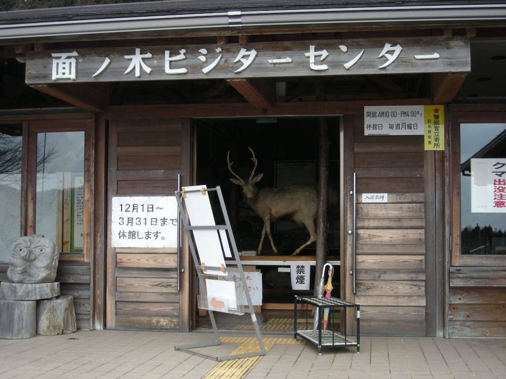まだまだ風は冷たい 折元峠を上ってみるが、春はそこまでである。 馬酔木 (あせび)の花 キブシも咲いています。 茶臼山高原道路 天狗棚駐車場 ハイキングはこれからでしょう。 入館無料 今日から開館みたい。 しかし、しかたない。しかと拝見する。 「隣の飲食所は営業してるのでしょうか??」 鹿に聞いたところ 「!!!!!!」